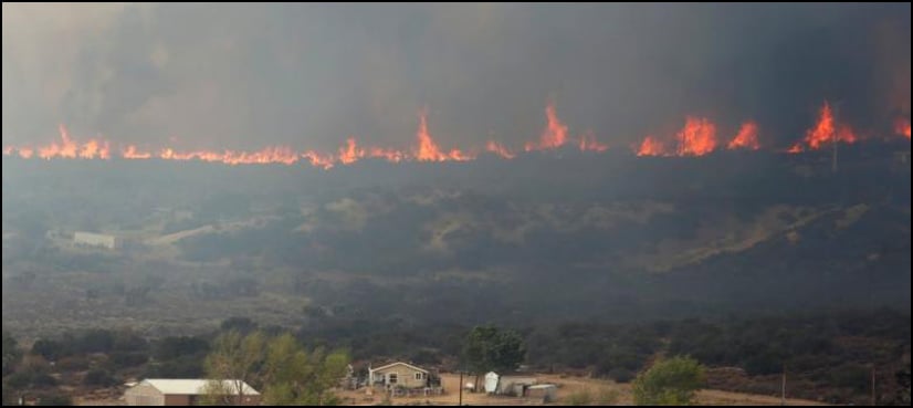 Dramatic local TV news footage of the wildfire captured from the front line in the town of Phelan showed tornado-like flaming vortexes – known as “firenadoes” – sent spinning into the air by the unusual ferocity of the blaze.