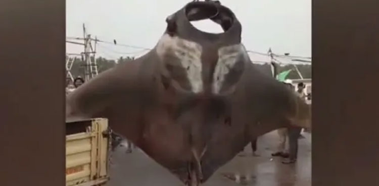 According to the details, the fisherman caught the giant manta rays when he was fishing in deep sea in Mangaluru off the Maalpe port. When he returned to the harbor, a crane had to be arranged to shift the rays into a truck.