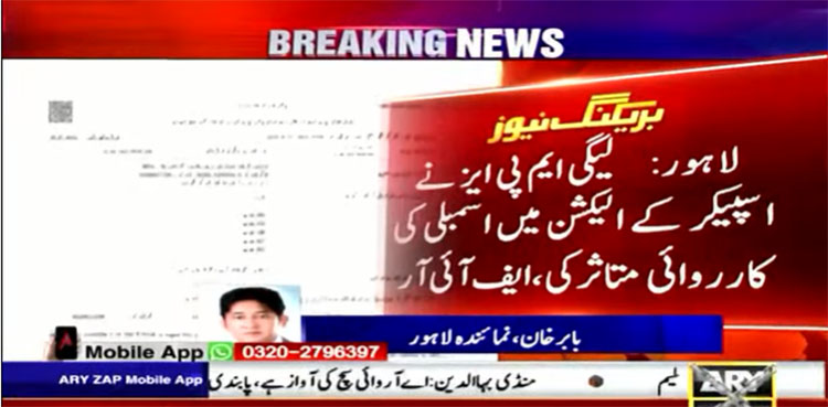 LAHORE: Five members of the Pakistan Muslim League-Nawaz (PML-N) in Punjab Assembly have been booked in a case pertaining to sabotaging the process for election of provincial assembly speaker, ARY NEWS reported.