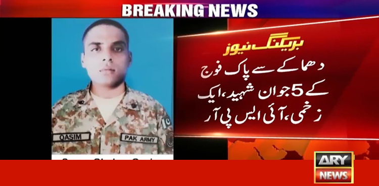 RAWALPINDI: As many as five soldiers of Pakistan Army were martyred and one injured in an explosion near the restive line of control (LoC) on Wednesday, said Inter Services Public Relations (ISPR).