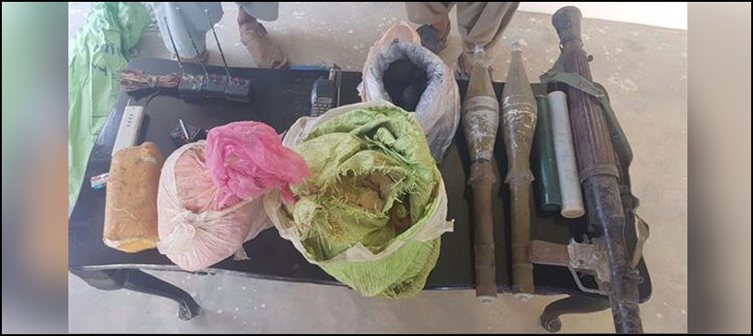 Huge cache of arms and ammunition including mines, prepared Improvised Explosive Devices, detonators, submachine guns and communication equipment recovered during the operations.