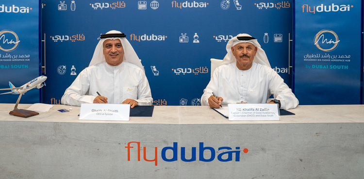 The signing ceremony with the Mohammed bin Rashid Aerospace Hub (MBRAH) was attended by His Excellency Khalifa Al Zaffin, Executive Chairman of Dubai Aviation City Corporation and Dubai South; Tahnoon Saif, CEO of MBRAH; and Ghaith Al Ghaith, CEO of flydubai.