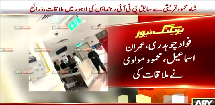 Ex-federal minister Fawad Chaudhry, former governor of Sindh Imran Ismail, and ex-MNA Mehmood Moulvi held a meeting with Shah Mahmood Qureshi at the Pakistan Kidney and Liver Institute (PKLI), where the PTI Vice-Chairman has been brought for treatment.