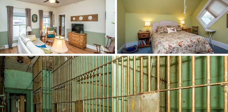 The house features four bedrooms, two bedrooms, and seven jail cells, according to a listing on Realtor.com. “The jail still exhibits the original prison cells with barred windows & the Jailers Office,” the listing states.