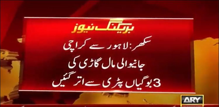 GAMBAT: Three bogies of a Lahore to Karachi bound freight train derailed on Thursday at Khairpur’s Gambat railway station, ARY News reported.