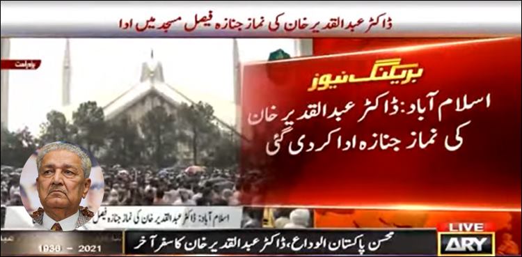 Dr Abdul Qadeer Khan given state funeral at Faisal Mosque