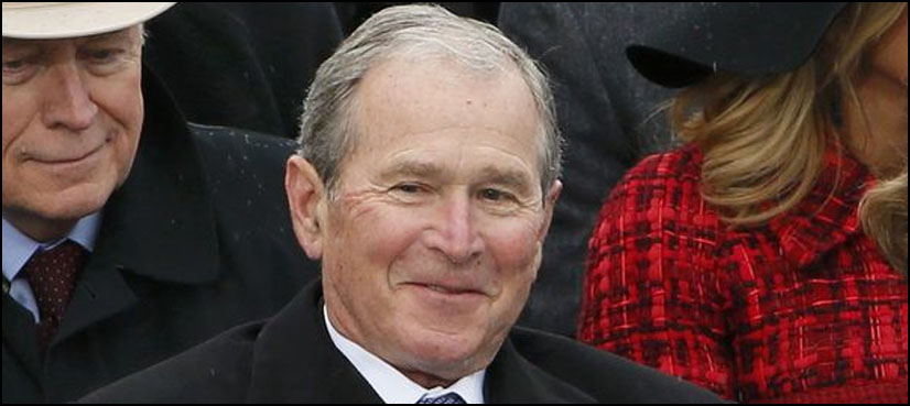 Ex-president Bush struggles with rain poncho at Trump inauguration