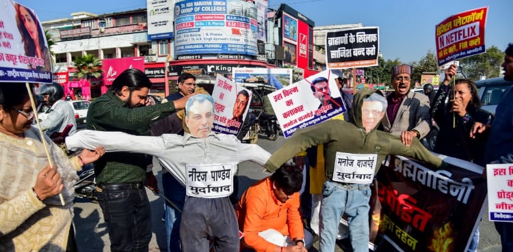 In Bhopal, members of the Bhartiya Brahmin Samaj organized a protest displaying placards with slogans such as “Death to producer Neeraj Pandey,” “Shut down Netflix and file an FIR,” and “Death to actor Manoj Bajpayee.” The protesters demanded immediate legal action and harsh consequences for the filmmakers.