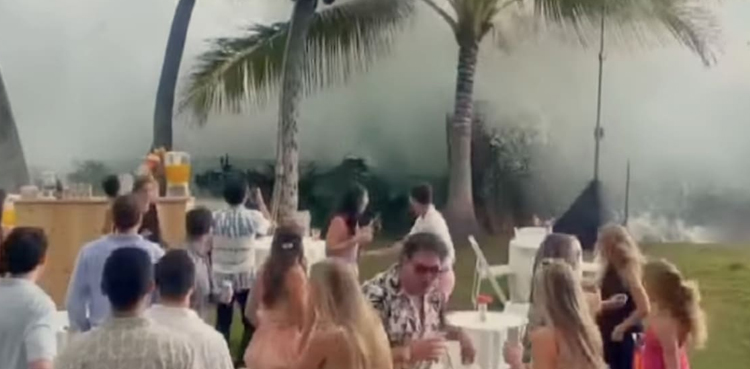 Video footage from inside the garrison showed surging water from the waves knocked over bystanders, smashed open glass doors and shattered windows.
