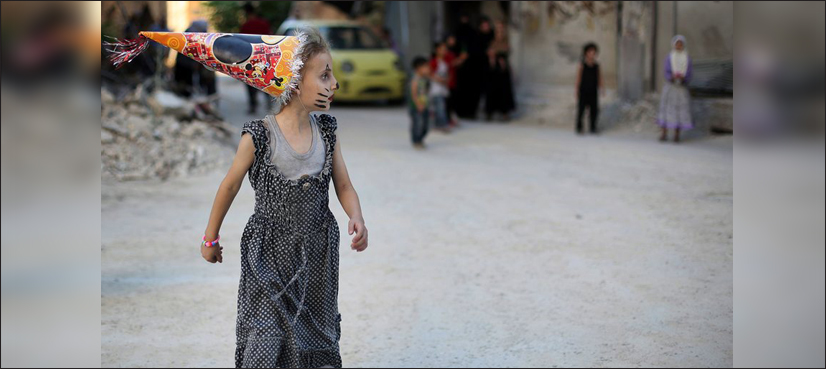 A girl walks with a balloon near the Al-Aqsa mosque compound in Jersualem