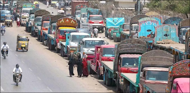 The transporters have parked their trucks at truck stations and various places in the city to protest against the new Axle Load Control regime on Motorways and National Highways in the country.