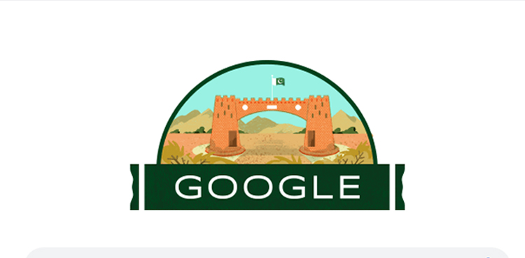 The doodle which is green in colour features a picture of the historic Khyber Pass with Pakistan’s flag flying high on it’s top to mark August 14.