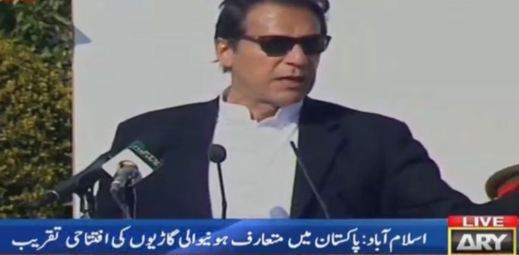 Addressing a ceremony held in connection with the launch of new vehicles in the country here today, he said, “his two major public welfare objectives this year will be ensuring universal health coverage through health card scheme and launching an initiative under Ehsaas Programme to make sure that no one goes to bed hungry.”