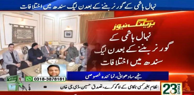 KARACHI: Internal differences within Pakistan Muslim League-Nawaz’s (PML-N) Sindh chapter have reportedly intensified following the appointment of Nehal Hashmi as Governor Sindh, ARY News reported citing sources.