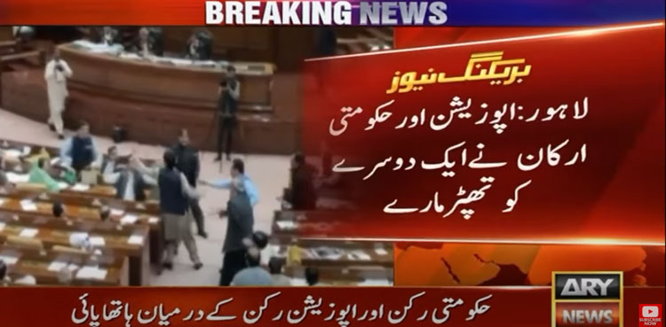 LAHORE: Chaos erupted in the Punjab Assembly on Monday when the heated session spiralled into a physical altercation between government and opposition lawmakers.