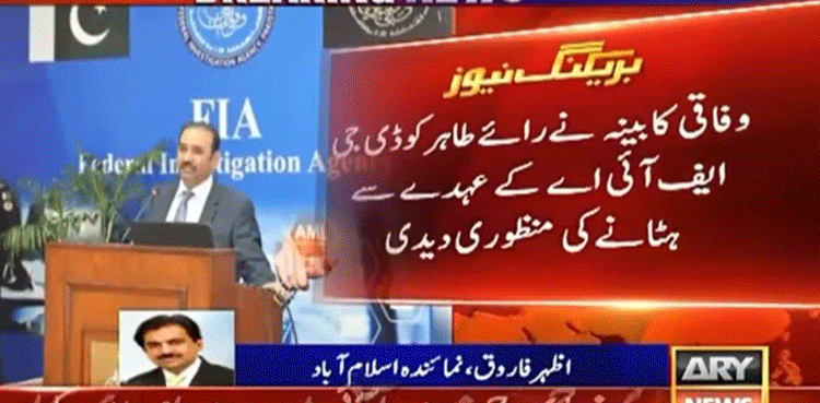 ISLAMABAD: Following a high-level reshuffle in the bureaucracy, the federal government on Wednesday removed Director General Federal Investigation Agency (FIA) Muhammad Tahir Rai from the post, ARY News reported on Tuesday citing sources.