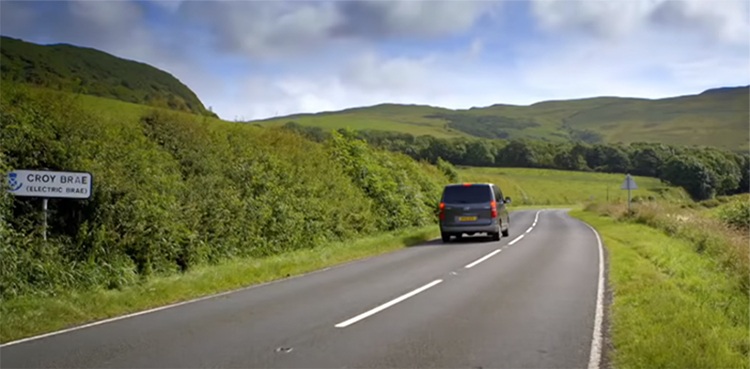 This phenomenon is possible in something that is called ‘Gravity Hill’ and an instance of this was captured in a YouTube video in Scotland.