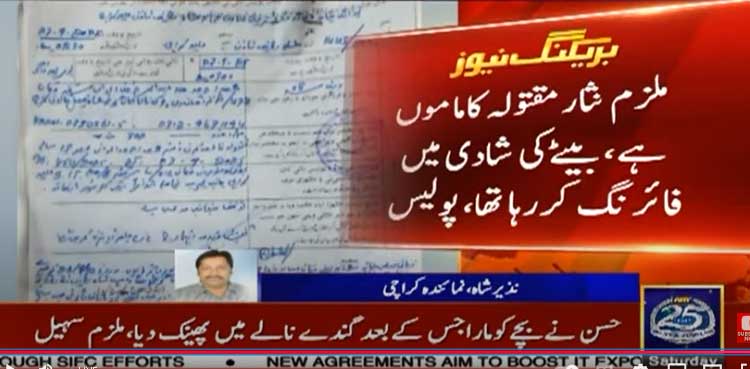 According to SSP Malir Abdul Khaliq Pirzada, the accused, Nisar Gul, opened fire into the air during his son Huzaifa’s wedding festivities. One of the bullets fatally hit his niece.
