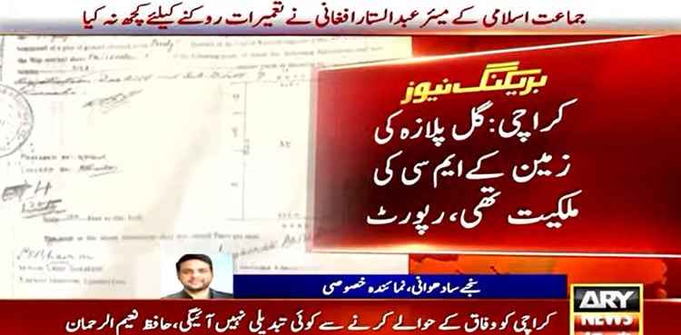 The report states that during the mayoral tenure of MQM leader Farooq Sattar, the same land was leased to a private company named Jeneka. Notably, the Jeneka Group purchased the Gul Plaza land just one month before the original lease period expired.