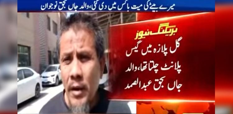 Speaking to the media, Abdul Rehman, father of Abdul Samad—who died in the fire—claimed that a gas plant had been installed at Gul Plaza and that its presence was widely known.