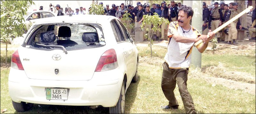 Gullu Butt was involved in vandalism on the day of Model Town incident. He was seen merrily dancing and celebrating as he damaged private properties in front of Minhaj-ul-Quran headquarters. This all he did ostensibly in patronage of police.