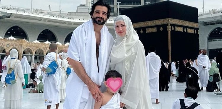 Days after celebrating her 30th birthday with intimate celebrations, Hamza Ali Abbasi performed the Umrah pilgrimage with his wife Naimal Khawar and their only son, three-year-old Mustafa, over the weekend.