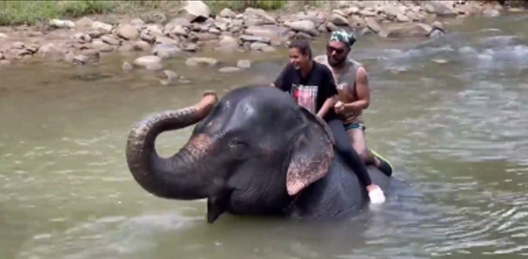 Actor Yasir Hussain shared a video of him riding an elephant with his celebrity wife Iqra Aziz in Thailand that has gone viral across social media platforms.