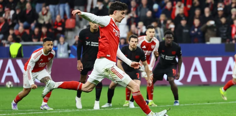 LEVERKUSEN, Germany – Arsenal’s eight-game winning run in the Champions League came to an end as they needed an 89th-minute penalty from substitute Kai Havertz to rescue a 1-1 draw at Bayer Leverkusen in their last-16 first leg on Wednesday.