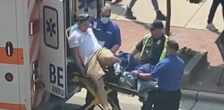 The clip showed khaki shorts and a white t-shirt-clad man receiving medical attention by being placed on an ambulance stretcher trolley by an EMT. Suddenly, the man gets up from the stretcher, hops out of the ambulance, and starts running.