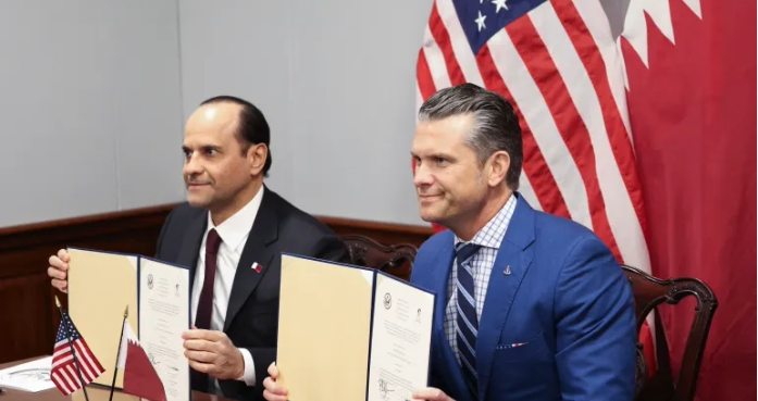 “We’re signing a letter of acceptance to build a ‘Qatari Emiri Air Force facility’ at the Mountain Home Air Base in Idaho,” Hegseth said at the Pentagon, with Qatari Defense Minister Sheikh Saoud bin Abdulrahman Al-Thani at his side.