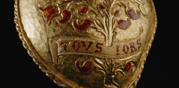 The pendant is the only piece of jewellery which still exists from Henry’s 24-year marriage to Katherine, and features a banner which says “tousiors” or “always” in old French.