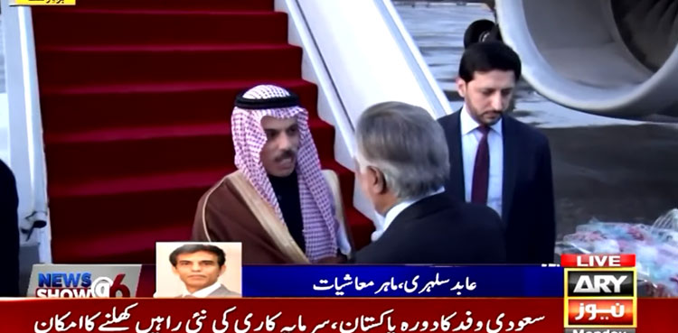 ISLAMABAD: A high-level delegation of Saudi Arabia, led by Foreign Minister Prince Faisal bin Farhan Al Saud, has arrived in Pakistan on Monday, with the newly-elected government hoping to attract billions of dollars in investment from kingdom, ARY News reported on
