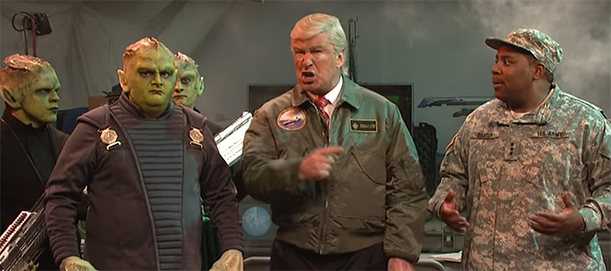 A military officer played by the cast member Kenan Thompson told Mr Trump (played by Alec Baldwin), “The aliens are killing us, sir. They have the most advanced weaponized technology we’ve ever seen. What should we do?”