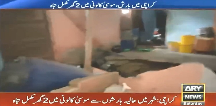 KARACHI: At least two houses were completely destroyed due to recent torrential rains in Karachi, ARY News reported on Saturday.