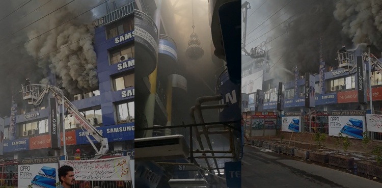 Huge blaze guts several shops in Lahore's Hafeez Center
