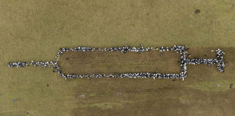 Watch: Hundreds of sheep form syringe shape
