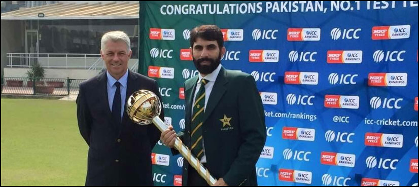 The ICC CEO David Richardson awarded the test mace to Misbah-ul-Haq on Pakistan’s reaching to the top of the ranking in the world under his leadership.