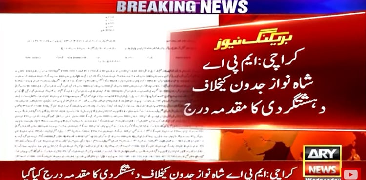 KARACHI: Police have registered a terrorism case against PTI MPA Nawaz Jadoon for protesting against the possible arrest of party head Imran Khan, ARY News reported on Wednesday.