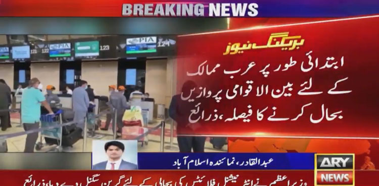 ISLAMABAD: Prime Minister Imran Khan has given a green signal to resume international flight operations, after closing its airspace to commercial flights since March to curb the spread of the coronavirus pandemic, ARY News reported on Tuesday, citing sources.