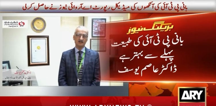 ISLAMABAD: Chief Medical Officer (CMO) of Shaukat Khanum Memorial Cancer Hospital, Dr. Aasim Yusuf, confirmed that he received a briefing from the doctors treating Pakistan Tehreek-e-Insaf (PTI) founder Imran Khan, ARY News reported.