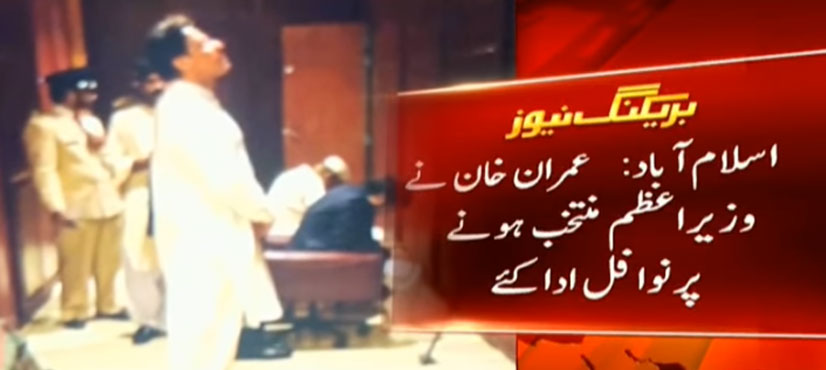 ISLAMABAD: Soon after being elected as the 22nd prime minister of the country, the Pakistan Tehreek-e-Insaf (PTI) chief Imran Khan went to his chamber in the parliament and offered prayers of gratitude, ARY News reported.