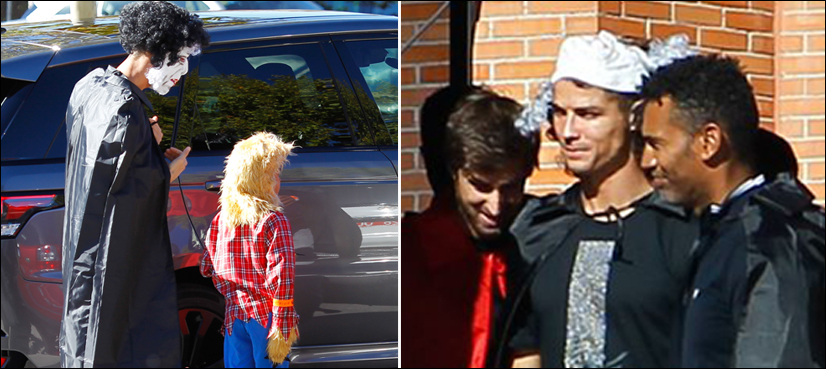 The Real Madrid star Cristiano Ronaldo arrived at school at the end of a fancy-dress day to pick up his son donning a scary outfit.