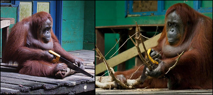 An amazing footage has been captured sowing orangutan using SAW to cut branches, better than some humans.