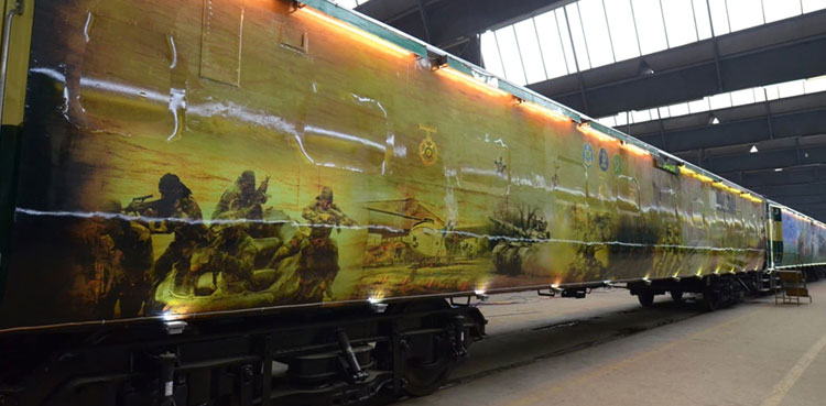 The special Azadi Train — which typically showcases the nation’s spirit and heritage through cultural floats representing Punjab, Sindh, Khyber-Pakhtunkhwa, Balochistan, Azad Jammu and Kashmir, and Gilgit-Baltistan.