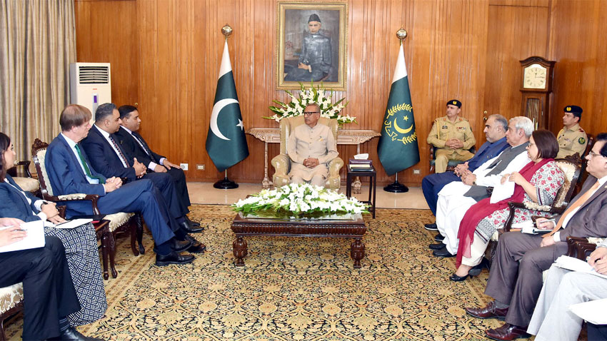 The delegation led by Khalid Mahmood on the president at the Aiwan-e-Sadr, Islamabad.