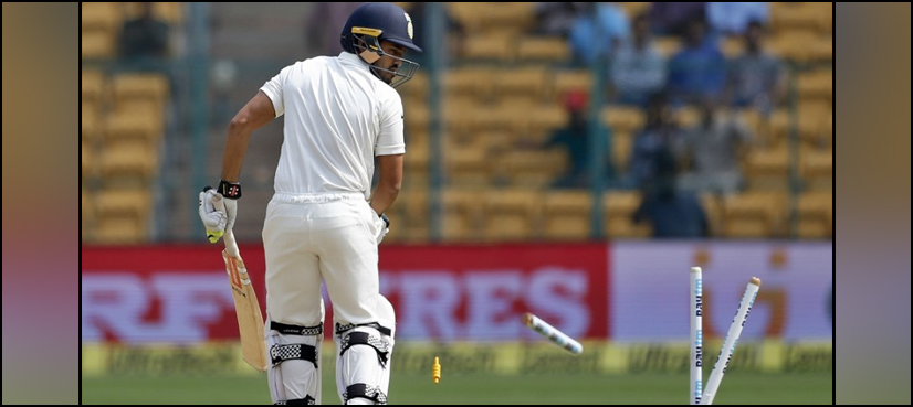 Cheteshwar Pujara top-scored at the M. Chinnaswamy Stadium with 92 for the hosts, who trail the four-test series 1-0.