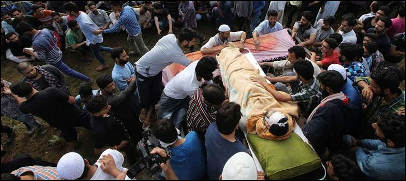 The Indian forces opened fire on unarmed citizens for violating the curfew to take part in the funeral prayers.