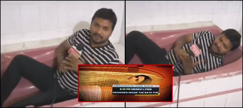 But, one particular channel provided its reporter with an actual bathroom to make the most of his ‘investigation skills’ to recreate the tragic moment of Sridevi’s demise.
