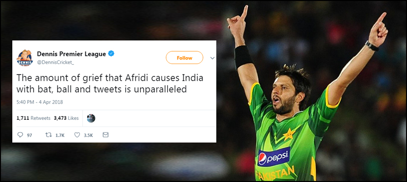 He tweeted saying, “The amount of grief that Afridi causes India with bat, ball and tweets is unparalleled.”