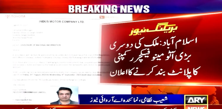 KARACHI: Indus Motor Company Limited has decided to completely shut down its plant from August 25 to September 06, 2023, amid supply chain disruptions.